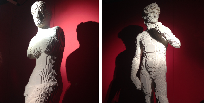 So, on to the Lego. I found the most impressive works the ones that were copies of real famous marble statues, but replicated in Lego. I also loved the replicas of famous art works that were made up of flat Legos..they were really clever.