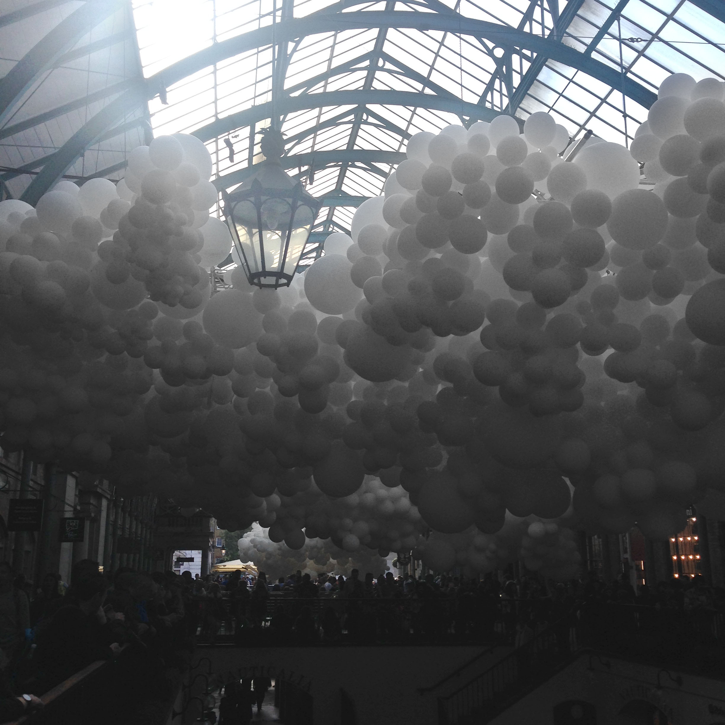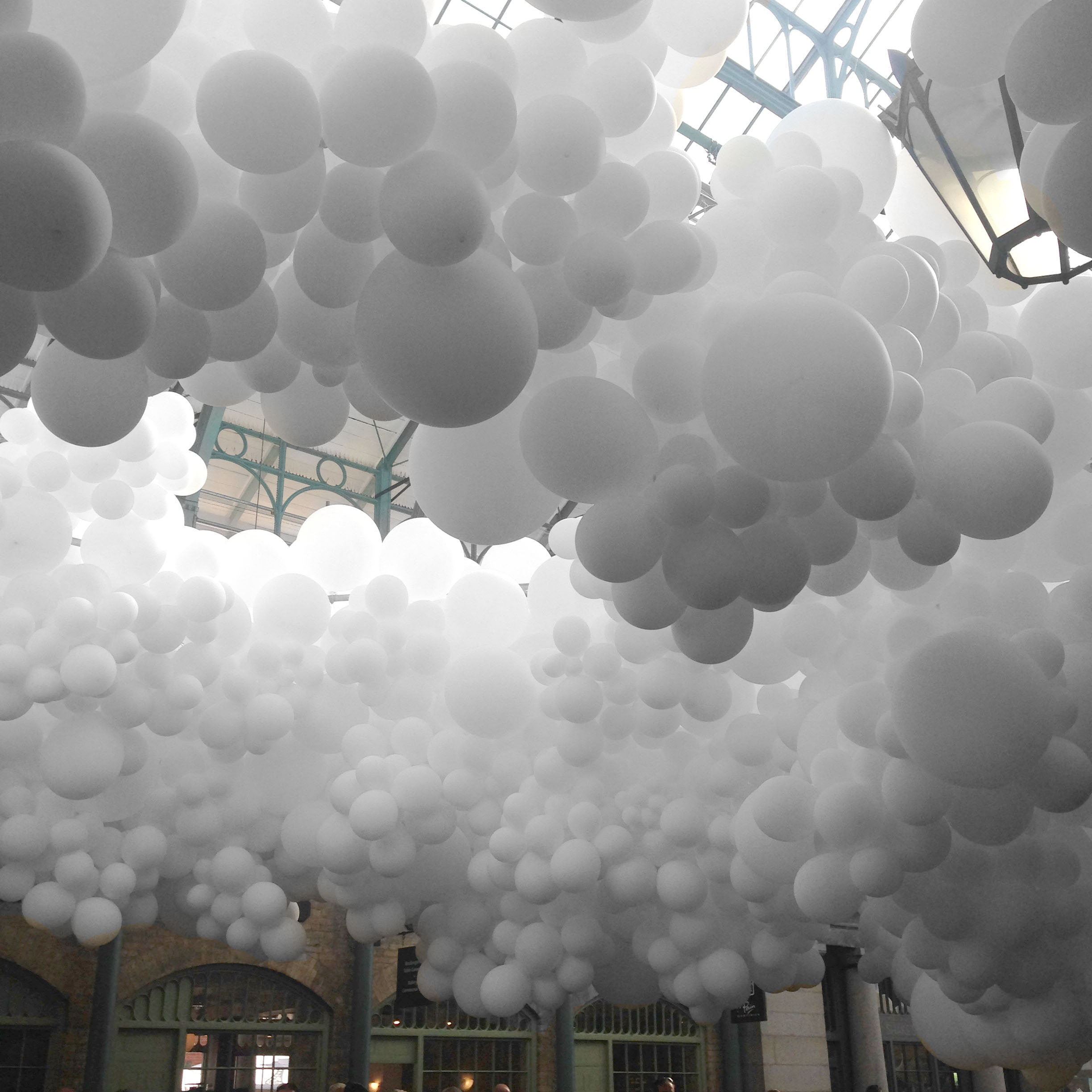 After seeing so many beautiful pictures on Instagram of what seemed to be floating clouds lining the interior of the market hall, I headed down to Covent Garden to view it for myself (and nab a suitable pic for my Insta). There are 100,000 white balloons making up this installation by French artist Charles Pétillon, stretching 54 meters down the Piazza and includes white pulsating lights to give the calming sensation of a heartbeat. The piazza was anything but calming though, with crazy crowds of people (mostly tourists) snapping photos of the balloons; but the piece really did wow us none the less. The balloons reminded me of the Martin Creed Exhibition me and B attended last year, where we got to run around in a room filled to the brim with white balloons!