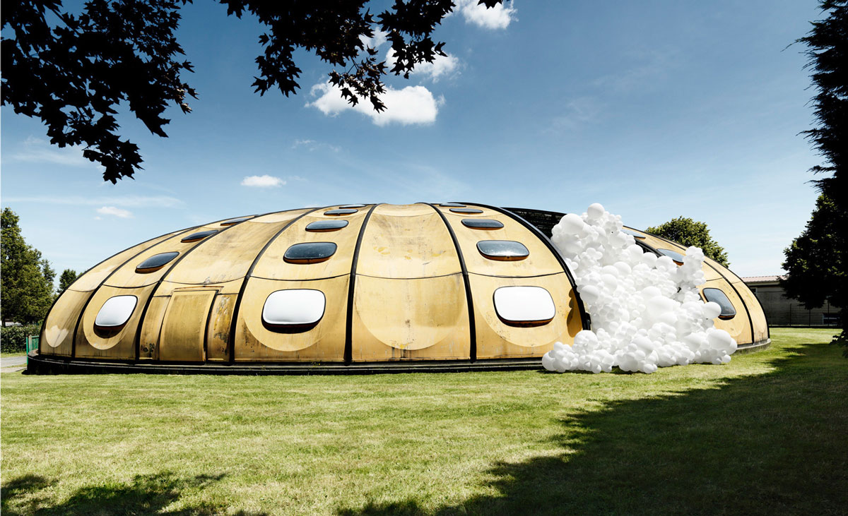 Afterwards, we visited the small pop up gallery space outside the Market space, which showcased photographs of other pieces in this series ‘Invasions’ that Pétillon has created. There was a short film running on loop, a ‘behind the scenes’ of the creation of one of the photographs, picturing the balloons overflowing out of a decaying structure.