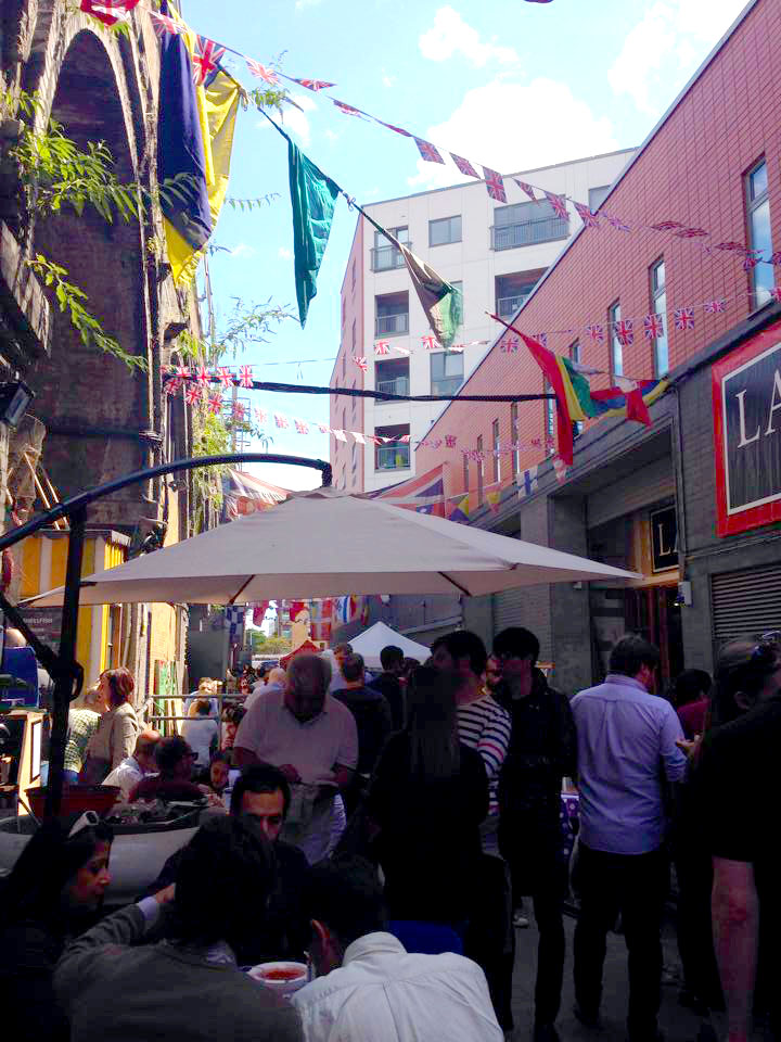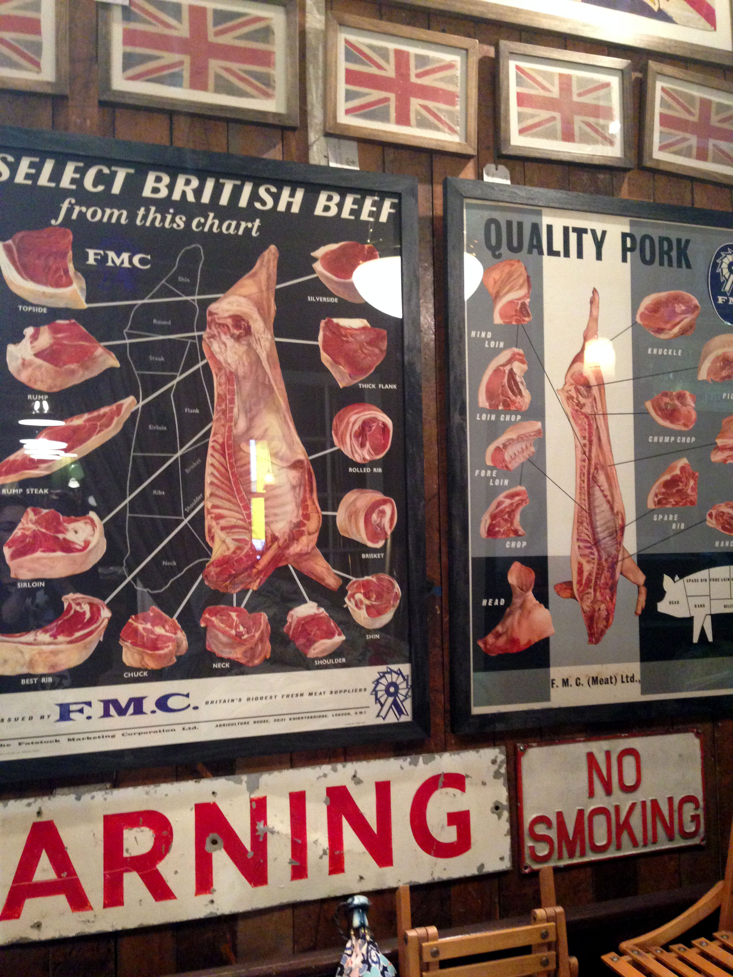 On Saturday we paid a visit to Maltby Street Market to grab a bite to eat for lunch. A short walk from Bermondsey tube station, tucked away from the main road, the narrow street is heaving with people enjoying delicious food and drink from the pop up stalls. Naturally we walked the length of the road first, to see what was on offer and to taste as many free samples as possible! I decided to go for a chicken and cheese Brazilian wrap, which was made fresh in front of me by two very nice Brazilian men (who were very accommodating to my food fussiness!) It was really tasty and I feel that I made the right choice – and there was a lot of choice. I did spot some amazing monstrous looking burgers soon after, but they will have to wait until next time. Also down the street was an interesting antique/junk shop, which we popped in to. I particularly liked the butchers’ meat posters, although I don’t think they’d fit in to our modern flat’s décor… On leaving we treated ourselves to a brownie each – it was the most gooey-melt in your mouth brownie I think I’ve ever tasted, I’m still drooling over the thought of it now! It was really nice to do something different on a Saturday and as long as there’s weekend sun, I will definitely be popping back before the summer ends.