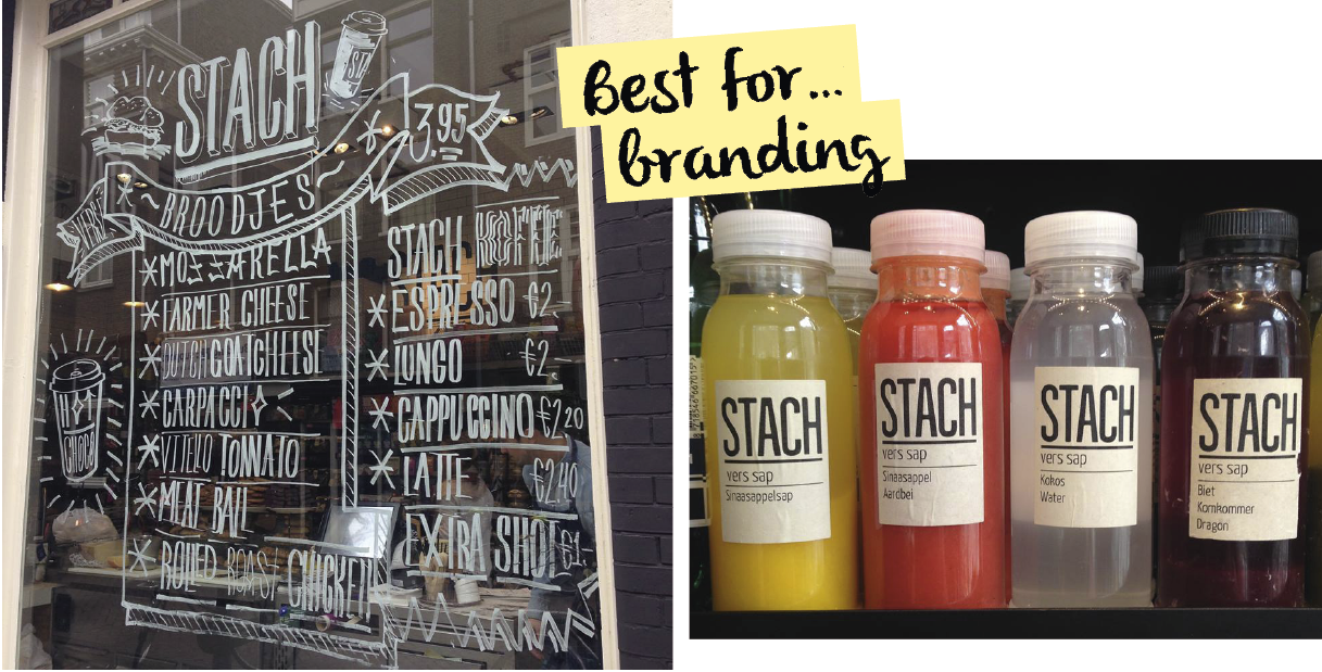 STACH FOOD // Van Woustraat 154, 1073 LW Amsterdam // Sticking on the theme of beautiful food photos, we popped into STACH to grab a coffee one morning, after spotting the window doodles from afar. Inside we realised we were in branding heaven, with the STACH look and feel being a minimalist one, with simple labels and signs, which I really loved! They had a great range of teas, coffees and pastries to go (as there was no seating inside), and I would recommend popping in to check out the cool Dutch brand.