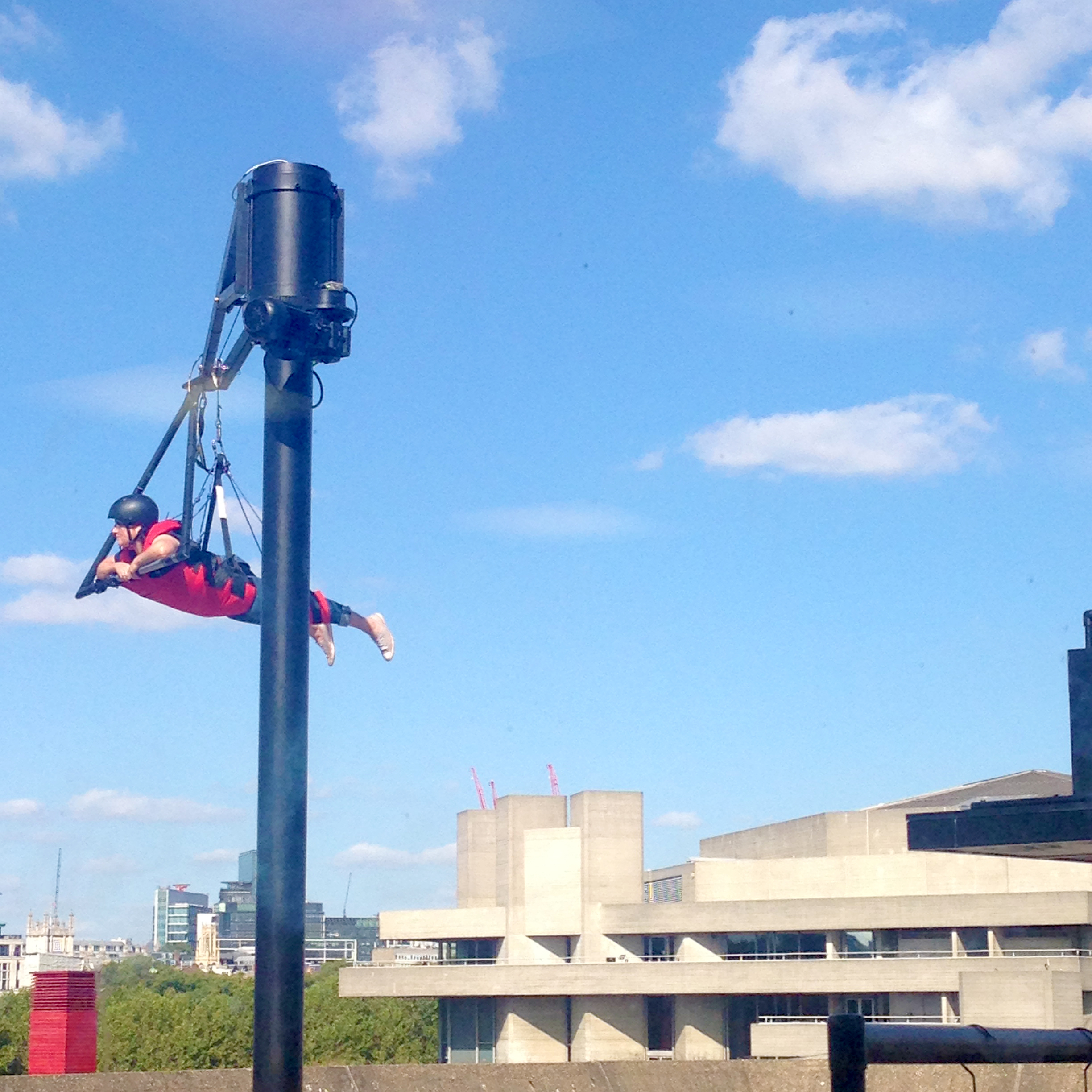 We went upstairs and queued for 20 minutes (grr) to take part in another experience where you go out onto the balcony wearing these crazy looking headsets which flip your vision upside down. They weren’t all too convincing, but we had fun wearing them and trying to work out our surroundings. They really weren’t too attractive though… There was another outdoor activity you could take part in, where you get strapped up to this ‘flying machine’ and go round in circles in the air. It sounds mental – and it basically was. We would have been up for trying it but the wait was an hour and a half(!) which was ridiculous.