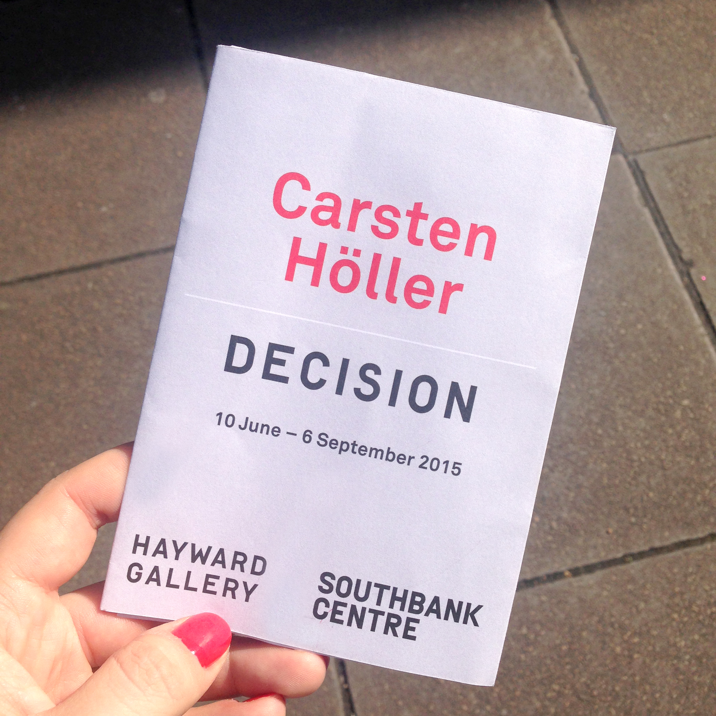 Last weekend I surprised B with tickets to the Carsten Holler exhibition at the Hayward Gallery. I’ve wanted to go for a while after seeing the huge swirly sides outside the building, wondered what other crazy stuff the exhibition held inside? We headed down to Southbank Centre Market to grab a bite to eat before our afternoon slot, and after doing about two laps, we finally decided on a Caribbean curry each. They were delicious, and very spicy, but I managed not to spill any down my top for once; which was a bonus. We hung out on the river side while we ate, then cheekily headed back to the market to buy a sweet treat each. I went for a millionaire’s shortbread square, while B went for some raw cookie dough-brownie hybrid. As delicious as it was, I couldn’t even finish mine, and we soon waddled over to the Hayward Gallery ready to start our adventure.