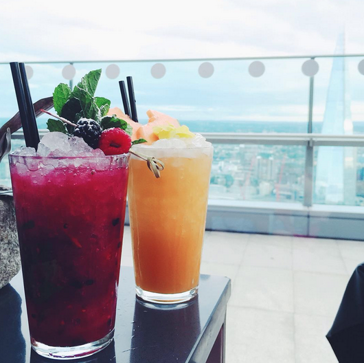 Inside we had a little wonder around and climbed up the side of the garden, to view more of London. Having all this nature in the modern man made structure made such an interesting contrast, and teamed with the bar inside made for a pretty cool place to spend a Sunday evening. We ordered some fancy cocktails, that weren’t actually too expensive for London prices, and the boys got some beer and cider. Jenny is an amazing food stylist by trade, so she managed to take a beaut pic of our colourful drinks – even though it took about 20 minutes for the family in the background to stop taking selfies and move out the way of our shot! As it got dark outside, table lamps were brought round to us which made the space feel a lot cosier, and was cool to see London all lit up from such a great height. If you had around a bajillion pounds, I thought the space would be such a good wedding party venue, but more realistically it’s such a great place to go for a date night. There’s also a restaurant, which would have been lovely to try out, but for now I think an £11 cocktail is as far as my budget will go!